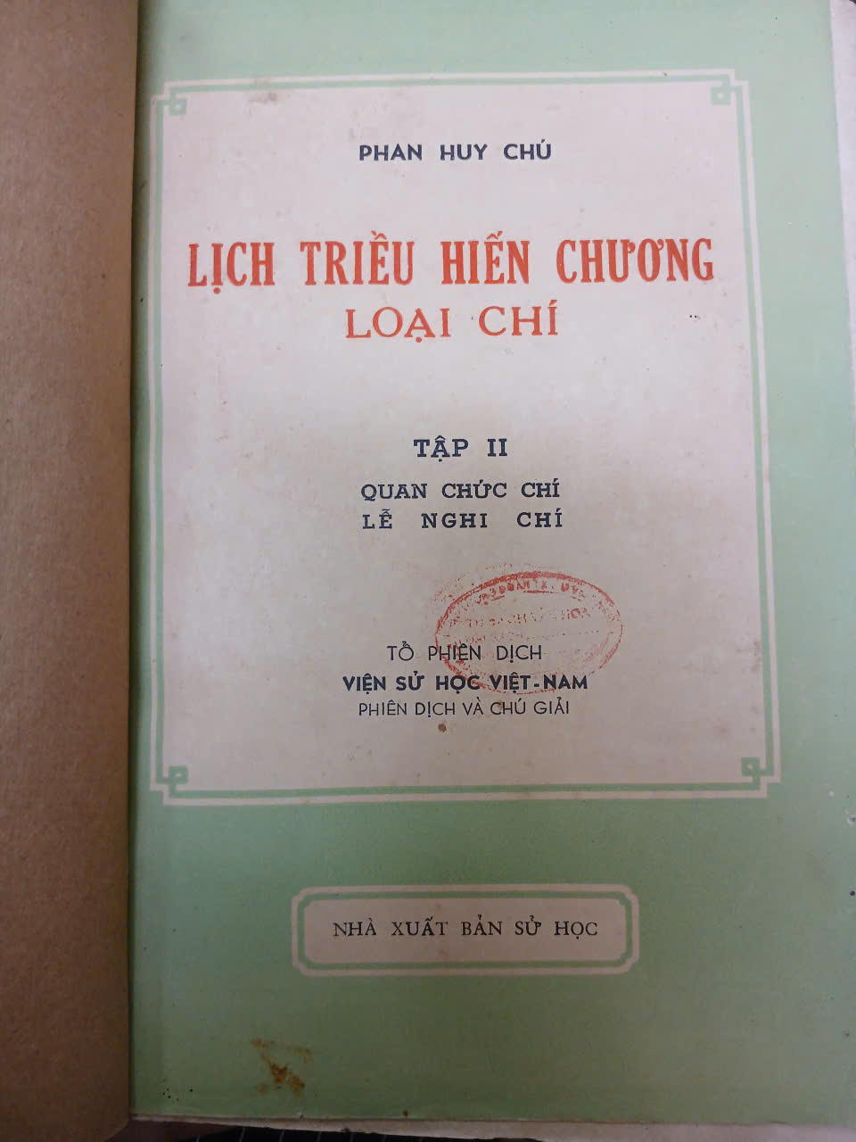 LỊCH TRIỀU HIẾN CHƯƠNG LOẠI CHÍ TẬP 2 - PHAN HUY CHÚ