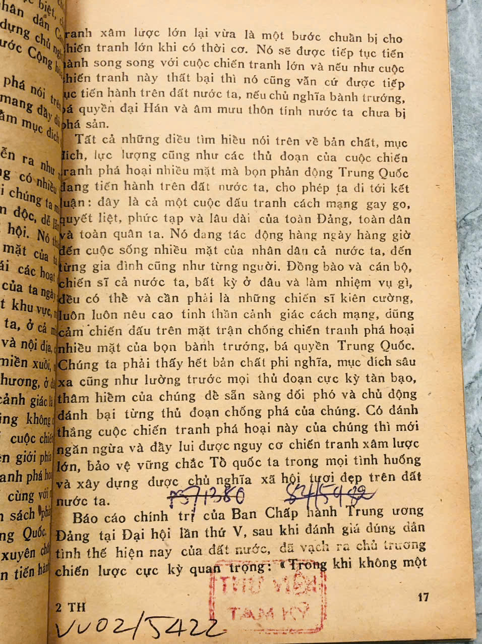 Ghim bấm ruột bị gỉ sắt, trang cuối bị rách nhẹ. Sách có ghi chú bằng bút mực.