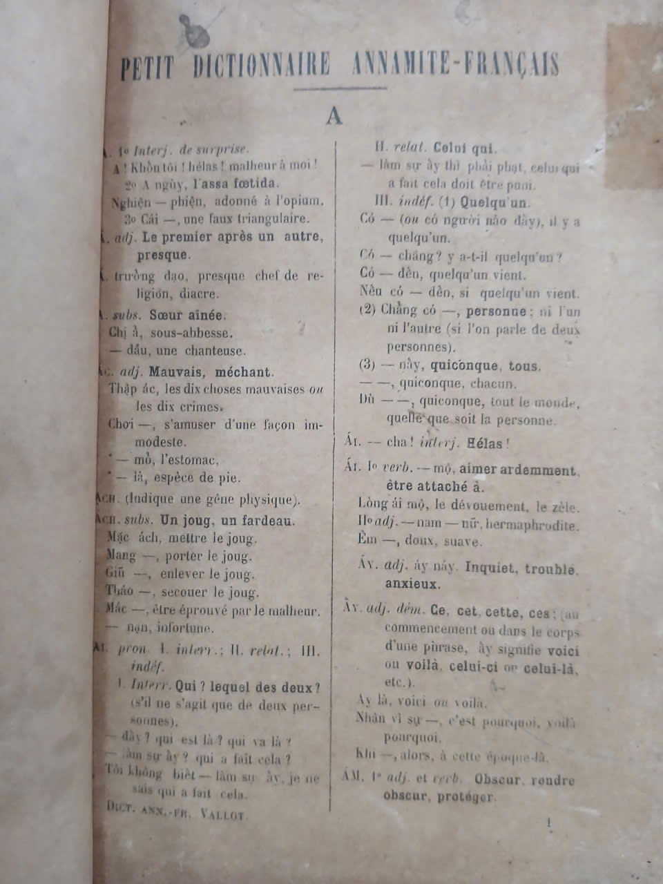 TIỂU TỪ ĐIỂN VIỆT - PHÁP - VALLEN