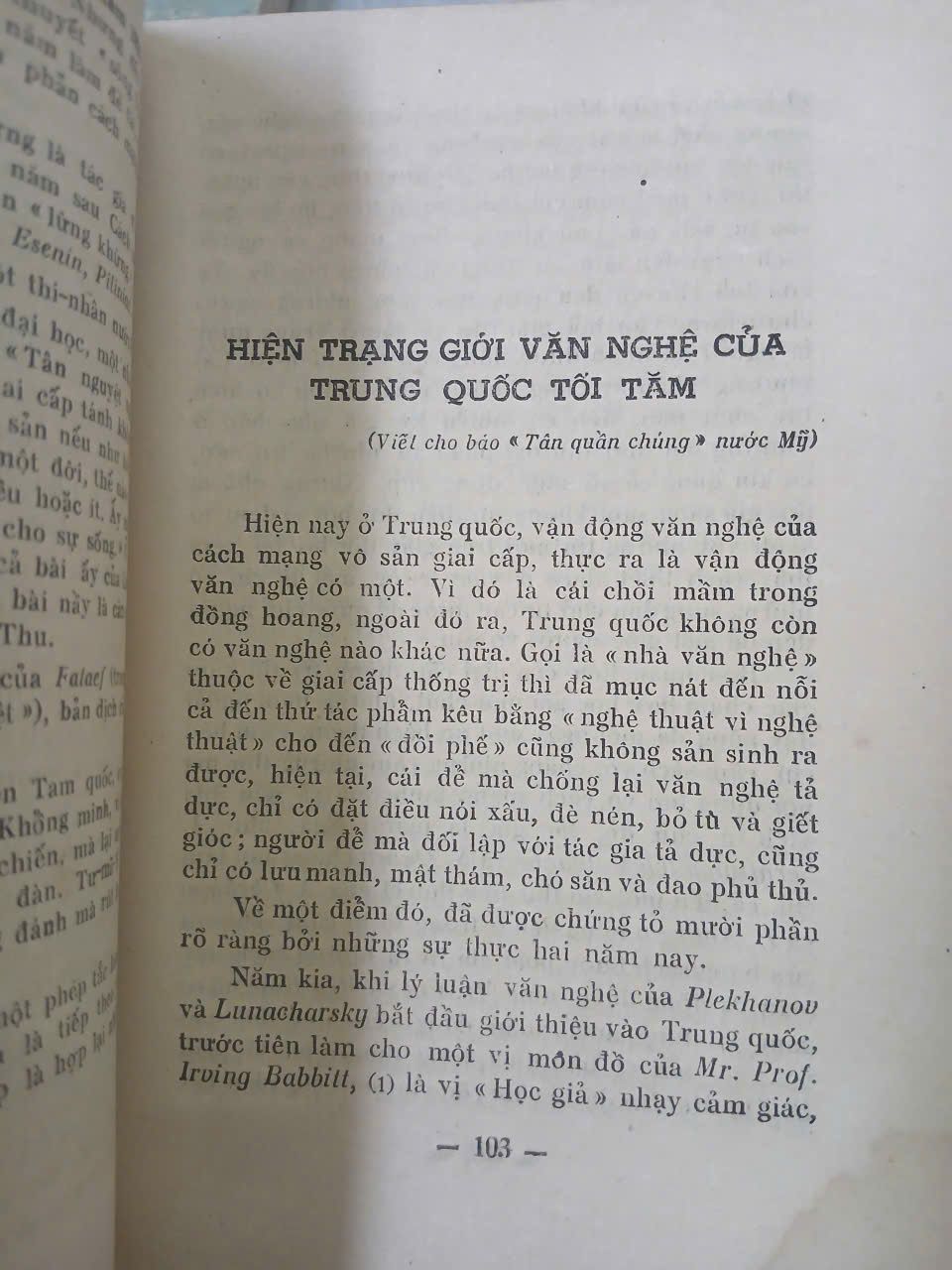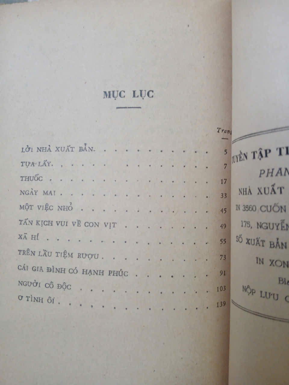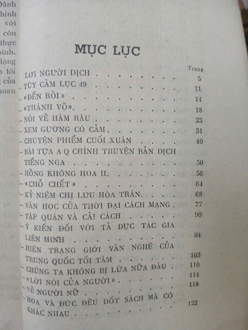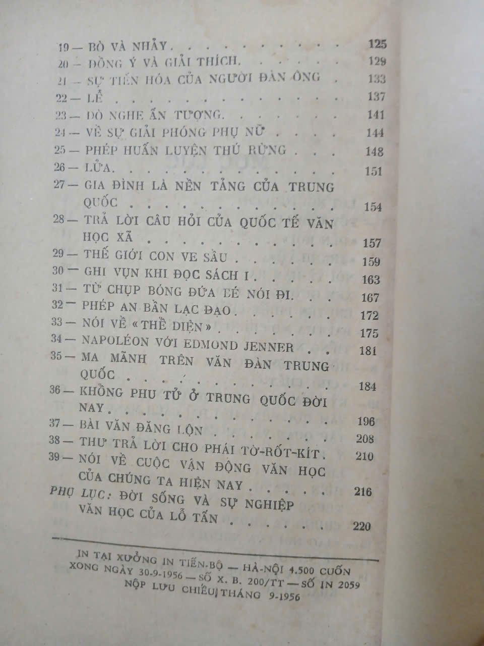 Cuốn "Tuyển tập tạp văn Lỗ Tấn": sách bìa mềm, không còn gáy, ruột tốt, vài trang có vết ẩm nhẹ ở góc. Dày 254 trang. NXB 1956